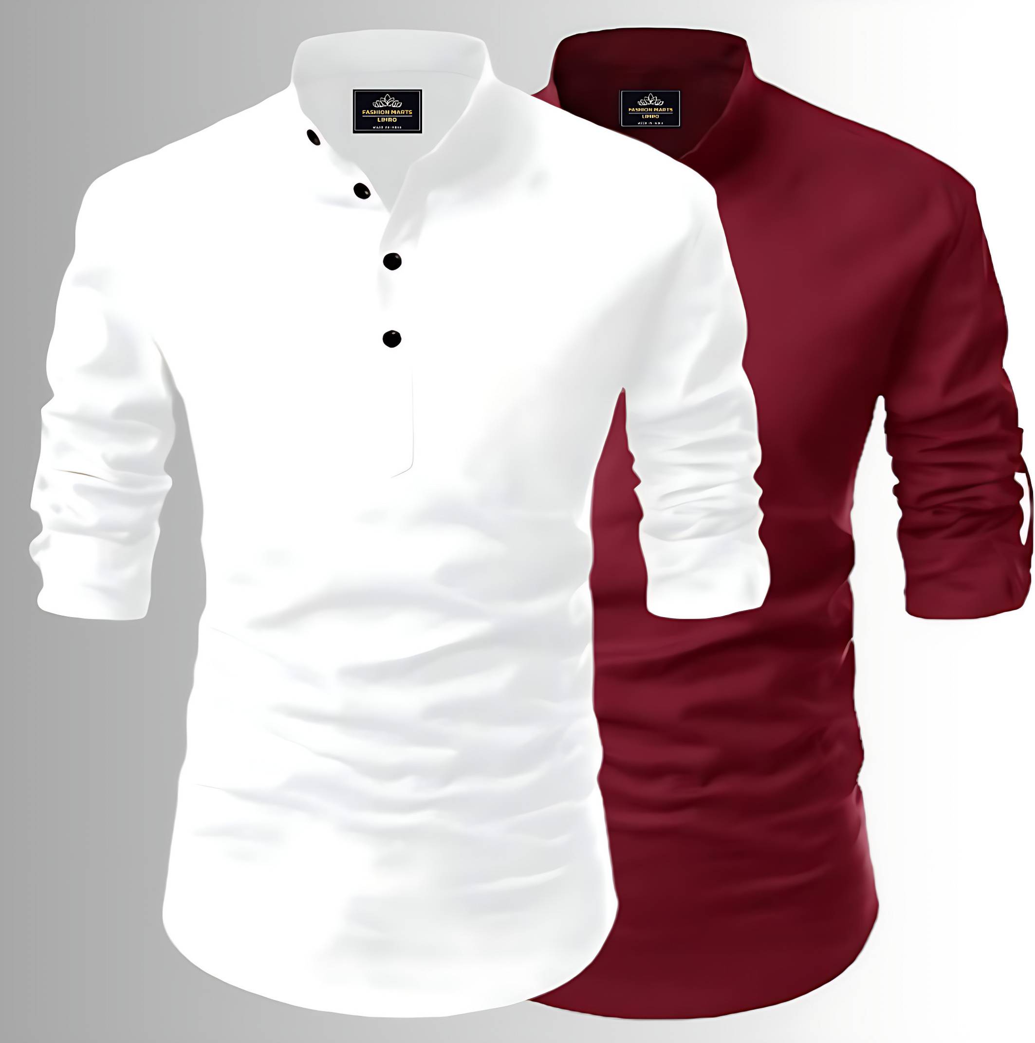 स्वमोती फैशन पुरुषों के लिए सॉलिड स्ट्रेट कुर्ता (सफेद, मैरून)