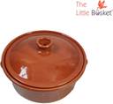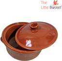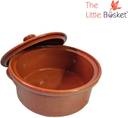 The Little Basket Handmade Brown Terracotta Round Glazed Mitti Clay Valladolid Cocotte with Lid Serve Casserole (1000 ml)