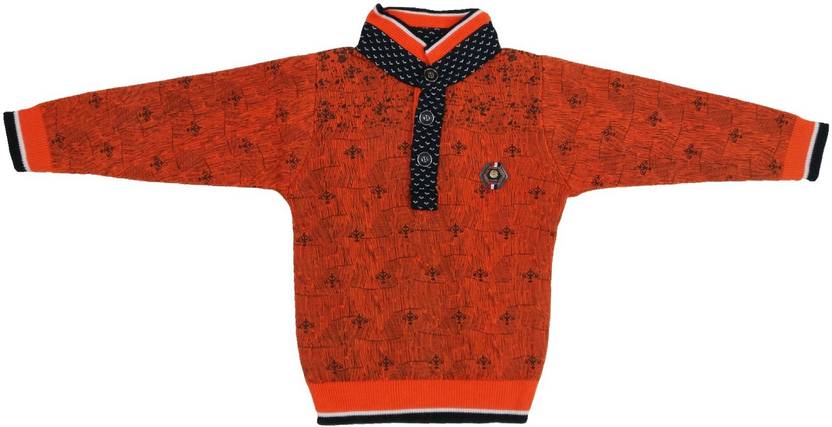 लड़कों के लिए कैज़ुअल प्रिंटेड नारंगी हाई नेक स्वेटर