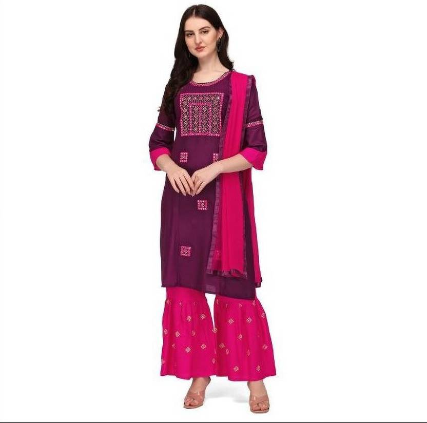 Women Cotton Rayon Kurta Sharara Set