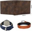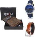 LOREM Belt, Wallet & Watch Combo  (Brown, Orange, Blue)