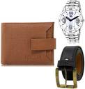 LOREM Belt, Wallet & Watch Combo  (Tan, Black, Silver)