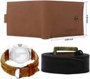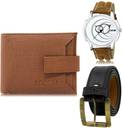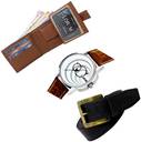 WATCH::-This Analog Watches comes with a Designer Look dial and stainless steel back. The dial is protected by a mineral glass and has a Designer strap for added comfort with Precious Finishing. The time is controlled by a single crown on the side of the watch. This watch is highly used for Sport plus Casual Wear. This watch is also highly recommended for new generation of india. This watches can be used for wedding, partywear, casual etc.WALLET::-7 ATM Cards Slot | 2 Cash Compartments | 2 Secret (Hidden) Pockets |1 Button Coin Box |Removable ATM Card Holder | Brand Logo embossed | Light Weight | Smooth Finish | Trendy |Latest Design | Leather Wallet For Men The few things you carry, carry well! Great for gift. Enjoy your life and Just put a bow on it and you're ready to give to your special one. Our wallet not only offers security, it's also very functional. It features a quick access to IDs, driver license, ATM debit cards / credit cards, and has two long top slots for money, receipts, or tickets. The few things you carry, carry well!BELT::-Presenting the New LOREM Belt collection for Men, We create value for money with latest trends, New Large range Best Qulity Zinc material Designer Buckle, Light Weight, Long-Lasting with Stitch Synthetic Leather Material. This High quality product and Synthetic leather promises you durability and light weight. One size fits all For waist 30 inches to 44 inches.
