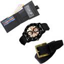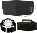 WATCH::-This Analog Watches comes with a Designer Look dial and stainless steel back. The dial is protected by a mineral glass and has a Designer strap for added comfort with Precious Finishing. The time is controlled by a single crown on the side of the watch. This watch is highly used for Sport plus Casual Wear. This watch is also highly recommended for new generation of india. This watches can be used for wedding, partywear, casual etc.WALLET::-7 ATM Cards Slot | 2 Cash Compartments | 2 Secret (Hidden) Pockets |1 Button Coin Box |Removable ATM Card Holder | Brand Logo embossed | Light Weight | Smooth Finish | Trendy |Latest Design | Leather Wallet For Men The few things you carry, carry well! Great for gift. Enjoy your life and Just put a bow on it and you're ready to give to your special one. Our wallet not only offers security, it's also very functional. It features a quick access to IDs, driver license, ATM debit cards / credit cards, and has two long top slots for money, receipts, or tickets. The few things you carry, carry well!BELT::-Presenting the New LOREM Belt collection for Men, We create value for money with latest trends, New Large range Best Qulity Zinc material Designer Buckle, Light Weight, Long-Lasting with Stitch Synthetic Leather Material. This High quality product and Synthetic leather promises you durability and light weight. One size fits all For waist 30 inches to 44 inches.