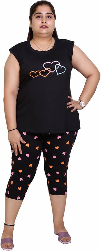 लव लंडन महिलाओं के लिए प्रिंटेड काला टॉप एंड कैपरी सेट