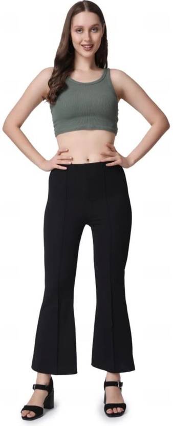 Women Slim Fit Black Lycra Blend Trousers