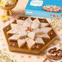 Key Features | - Always Fresh : 99.99% Pure Silver Leaves, Premium California Almonds, Sulphur Less Sugar, MAP Packed to keep it Fresh & Safe, Freshly Made with LOVE., Pure Ingredients - Just like Grandmothers and Mothers we Check and Select each ingredient by Smell, Taste, Size, Texture and Use Science to test for Protein, moisture etc., Balanced Sugar : Sugar in Indian Mithai is used to bring out the taste of sweets, and we do just that. Our sweets are perfect balance of sweetness and taste., Sizes : From personal-sized 200gm Badam Katli boxes for everyday enjoyment to larger 400gm and 1kg (combo pack) and Badam Katli offers etc., Varity : Savor the joy of Indian katli, a cherished delight with rich culinary heritage and traditions of India. Our range includes duo of Kaju Katri, and Badam Katri., Perfect Gift : Its a classic that remains a favorite among our customers. Whether it's a Festival, a Religious Ceremony, Rakhi for brothers, Diwali Gift, our Badam Katli is the Perfect Choice.