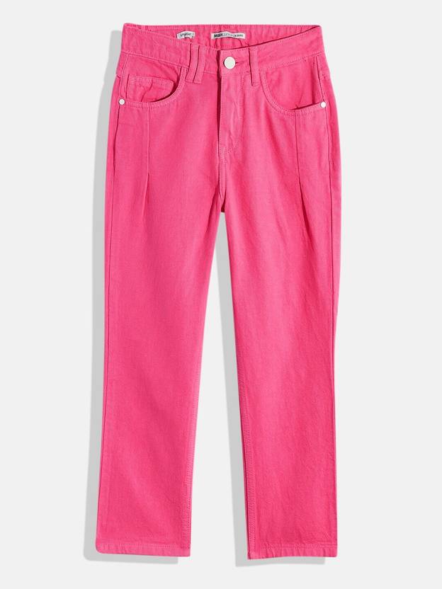 रंगीन शेड, कोई फीका गुलाबी जींस नहीं स्ट्रेट फिट, मिड-राइज़ क्लीन लुक स्ट्रेचेबल 5 पॉकेट लेंथ: रेगुलर