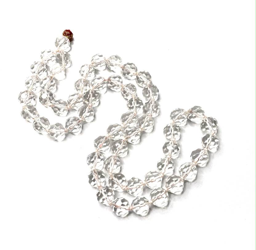 100% Natural Lab Certified 54+1 Big Size Diamond Cut Crystal Mala Or Sphatik Mala with Gangajal and Chandan from Kashi (Weight Between 250 Gm to 270 Gm Size 14 MM to 16 MM)