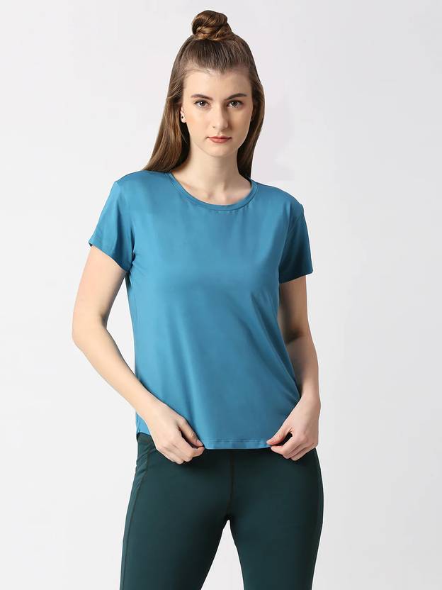 Women Solid Round Neck Cotton Blend Green T-Shirt