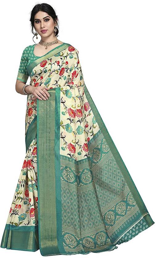 Printed Daily Wear Cotton Silk Saree (Blue)