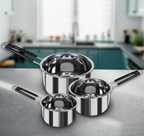 Masox Store Steel Saucepan Set with Handle for Tea, Coffee Cookware Set, Milk Pan Tapeli K5 Cookware Set (Stainless Steel, 3 - Piece)