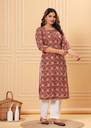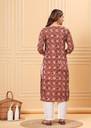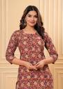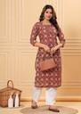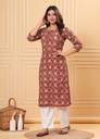 Women Block Print Pure Cotton Straight Kurta (Maroon)