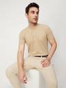 Men Solid Mandarin Collar Polycotton Brown T-Shirt