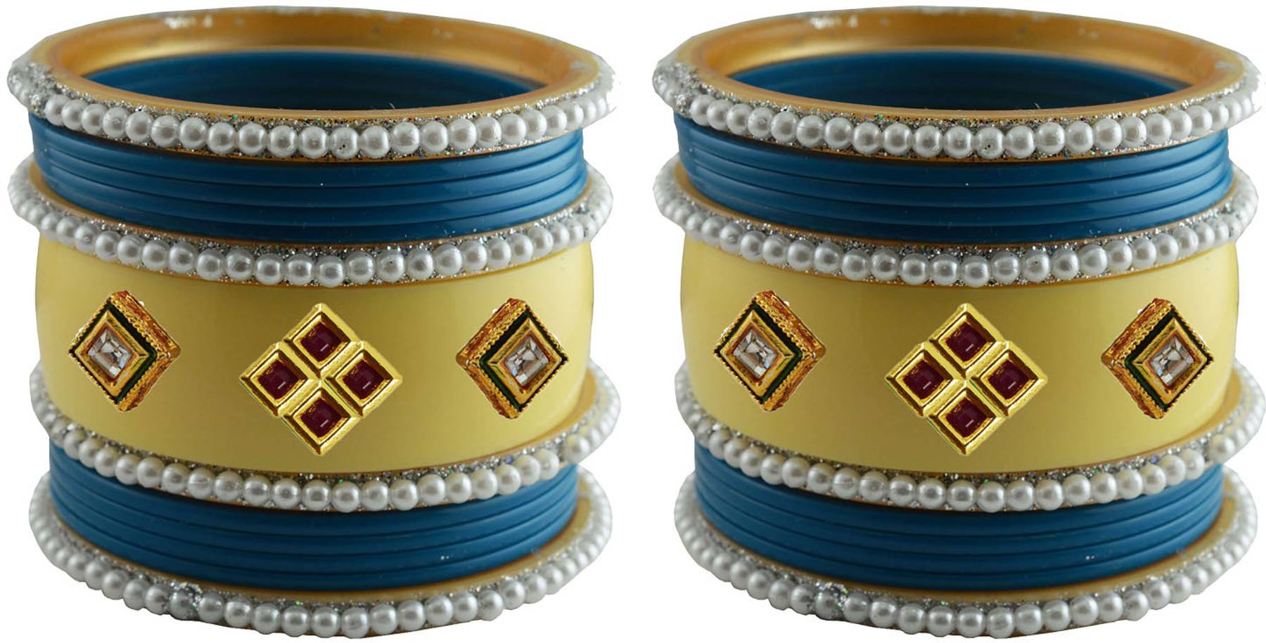 Firozi Cream Moti Stud Acrylic Bangle With Very Extra Large Size