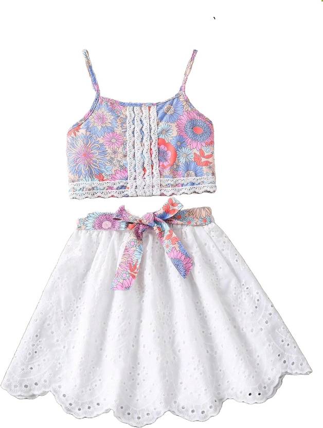 Girls Midi/Knee Length Festive/Wedding Dress (Multicolor, Sleeveless)