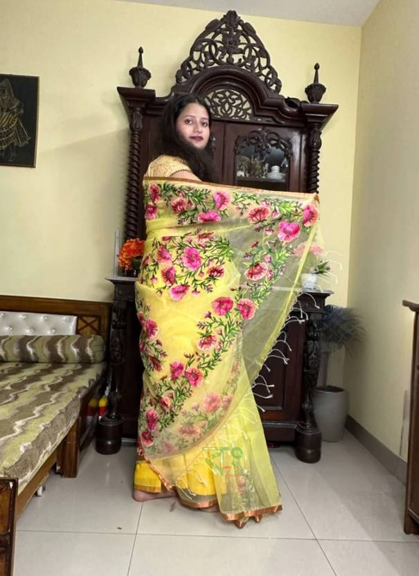 Printed Daily Wear Cotton Blend Saree (Yellow)