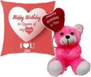 1 Happy Birthday to you Quote Printed Teddy, 1 Printed Cushion Cover (Size-16*16 Inch), 1 Microfibre Filler