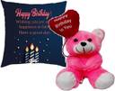 1 Happy Birthday to you Quote Printed Teddy, 1 Printed Cushion Cover (Size-16*16 Inch), 1 Microfibre Filler