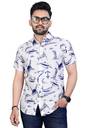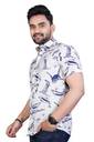 Fashionable Village Men Animal Print Casual White, Blue Shirt