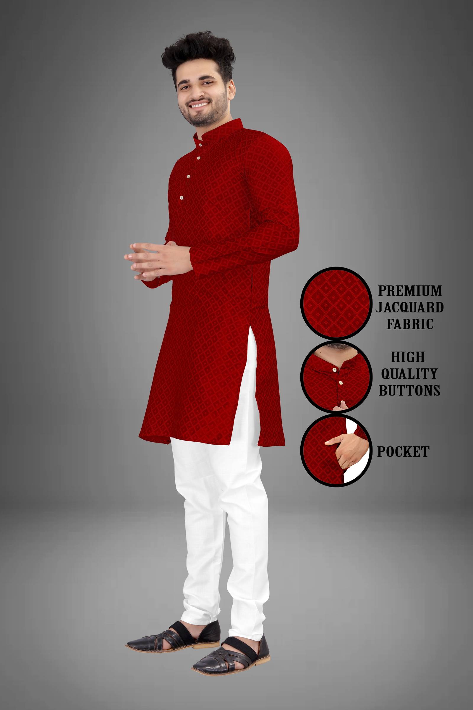 Shree Dutt Creation Men Embellished Straight Kurta (Red)