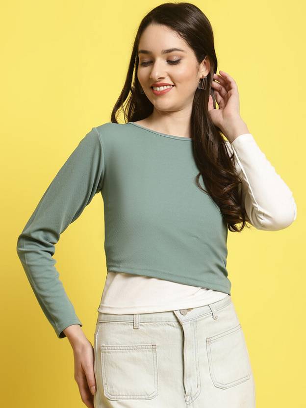 मेट्रोनौट महिलाओं के लिए कैजुअल कलर ब्लॉक हल्का हरा, बेज टॉप