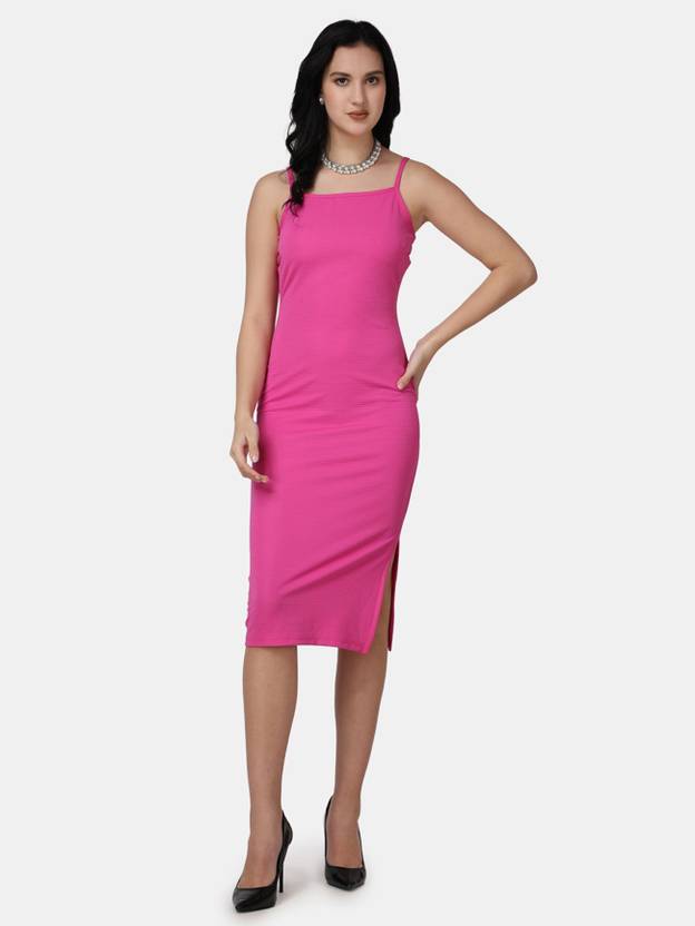 METRONAUT Women Bodycon Pink Below Knee Dress