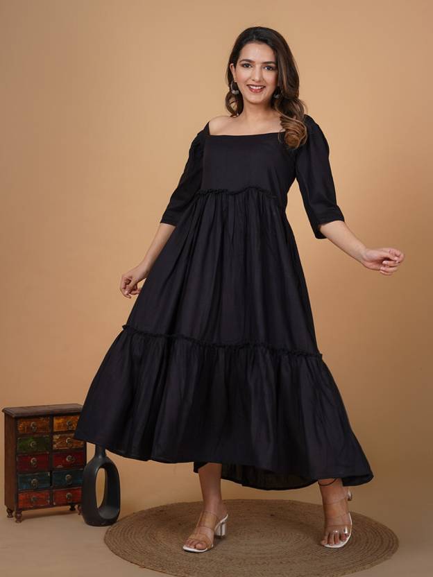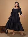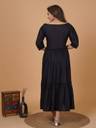 Crafted from high-quality rayon fabric, this dress offers a luxurious and lightweight feel, ensuring a graceful drape that flatters all body types. The flared silhouette adds a touch of whimsy, allowing you to move with ease and grace, whether you're heading to a social gathering, a brunch date, or a casual day out.
