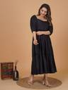 Introducing our exquisite Rayon Flared Dress with Gathered 3/4 Sleeves – a perfect blend of comfort, style, and sophistication. Elevate your wardrobe with this versatile dress that seamlessly combines classic design elements with modern flair.