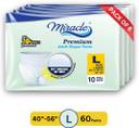 miracle Pants Style | Upto 10 hours Protection | Unisex | Waist Size (40"-56") Adult Diapers - L (60 Pieces)
