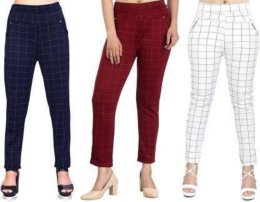 वरबम सफेद, मैरून, नीला जेगिंग (चेकर्ड)