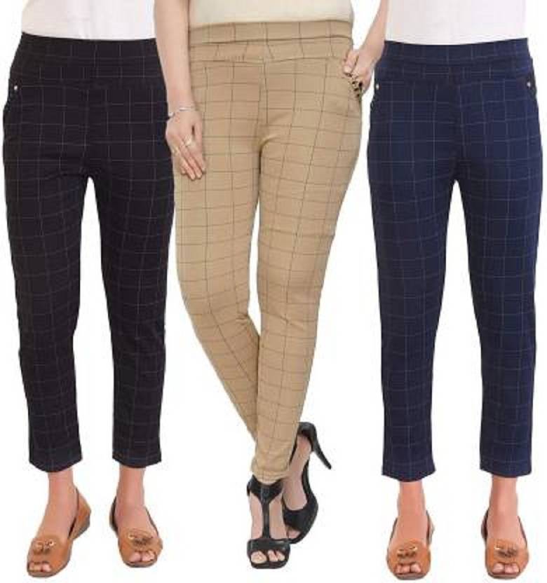 4M Sales Presents good extra fine best quality stretchable cotton linen blend pant, trouser having both side embellished pockets. Checks Trouser Pants Stretchable Mid Waist Ankel Length Stylish Jeggings for Women. These pants are made of cotton linen blend with lycra to give you a perfect fit and trendy look at the same time a longer fabric life. It is an ankle length pant, trouser and looks stunning every time if match it with Tops, T-shirts, dresses or tees for casual purpose or can be wear during party with designer tops. This trendy stylish Pants, Trousers Ideal for daily, casual, party, evening, office , work wear, semi formal or formal occasion. Very nice and comfortable smart western bottom wear jeggings for women designed in line with the best international trends. Available in size :- 28 30, 32, 34 and free size.