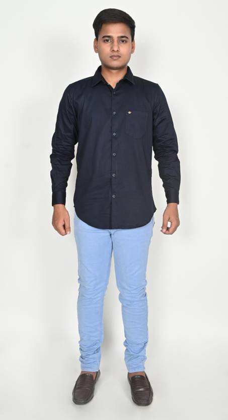 MEN'S NAVY BLUE REGULAR FIT FULL SLEEVES CASUAL SHIRT
