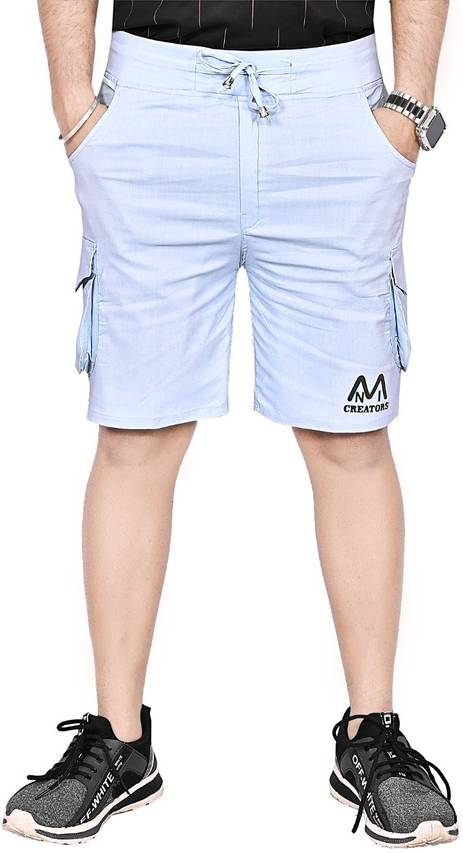 HouseOfCommon पुरुषों के लिए सॉलिड हल्का नीला कैजुअल शॉर्ट्स