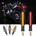 Mockhe DRL LED Turning Side Indicator For Bikes - Pack of 4. Condition: 100% new and stylish design; Input Voltage: 12V;Light source: LED. Energy-saving level are far superior to traditional lighting products. With high brightness, low heat, low energy consumption, high efficiency, no filament structure. Cool shape design makes the bike more grade, keep the rate higher. Light function: Light up without delay, optical purity, color; Material: High quality black plated ABS plastic. Features: Waterproof, Durable, Low temperature, low power consumption, high performance indicator.Faster on / off time and vibration resistance. Lifespan: 30,000 hours. Professional Installation Required, Easy and convenient to install, just spend a little time then you can finish installation