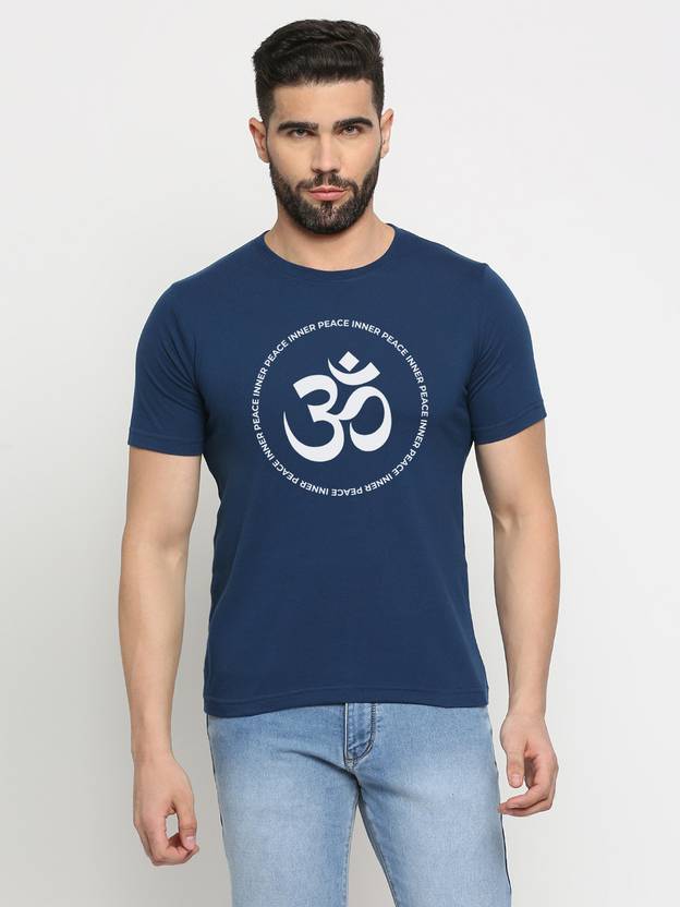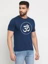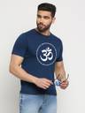 Men Typography Round Neck Cotton Blend Blue T-Shirt