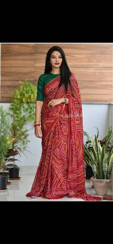 Printed Bandhani Muslin Saree (Red)