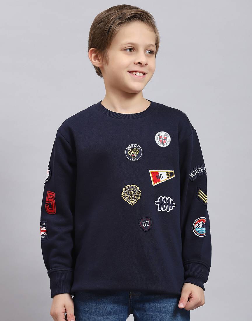 मोंटे कार्लो लड़कों के लिए कैज़ुअल सेल्फ डिज़ाइन गहरा नीला गोल गला स्वेटर