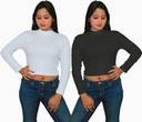 Mr Lier Crop Top, Casual Full Sleeve, High Neck Crop Top Combo, White & Black color Crop Top for Women.