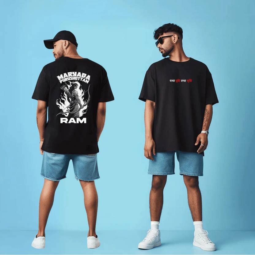 Men Printed Round Neck Organic Cotton Black T-Shirt