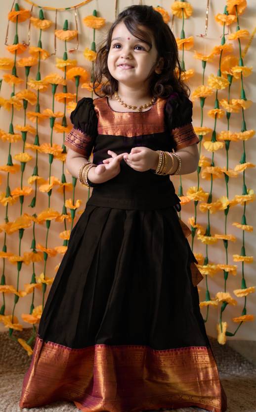 मिस्टर वाय लड़कियों के लिए लेहंगा चोली एथनिक वियर एम्बेलिशड लेहंगा चोली (काला, 1 का पैक)