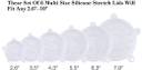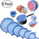 Silicone Stretch Lids, 6 pack to keeping food fresh, reusable, Durable and expandable to fit various sizes for bowl covers, Cups, canned, pots and pans in dishwasher, microwave and freezer Color: white & blue 6 sizes included, different size fits your different needs. 2. 6" (Can stretches to 3. 5")3. 8" (Can stretches to 5. 5")4. 6" (Can stretches to 6. 5")5. 8" (Can stretches to 8")6. 5" (Can stretches to 9")8. 3" (Can stretches to 11")tips for use: tip 1find a silicone Stretch lid which is smaller than the bowl. Tip 2cover the bowl and hold one side, then stretch another side to fit the bowl. Tip 3adjust the lid and make sure it's sealed. Warming tips: 1. Clean lids and keep them dry before the first use and after each use. 2. Clean lids with soap and hot water or put in the dishwasher. Avoid abrasive or force-foam cleaners. 3. Lids can be used in the microwave or oven, but are not suitable for placing on the gas or electricity directly for heating. 4. Wash the lids after cool Once heated in the microwave or oven to prolong the service life. 5. You had better not completely seal container when you are using in microwave or oven, because the expanding heat and pressure from Container, may result in damage or injury