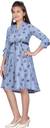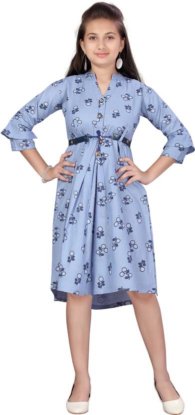 MUHURATAM Indi Girls Midi/Knee Length Casual Dress (Blue, 3/4 Sleeve)