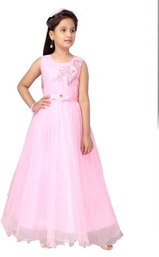 Girls Maxi/Full Length Party Dress (Pink, Sleeveless)
