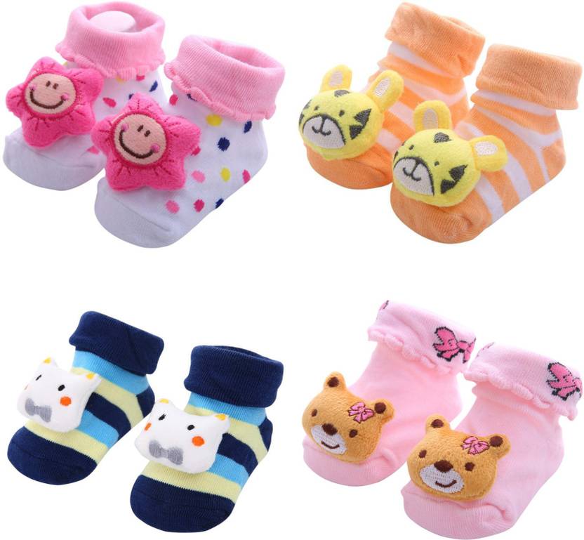 Mumslap छोटे बच्चों और छोटी बच्चियों के लिए एनिमल प्रिंट मिड काफ/ क्रू मोज़े (4 का पैक)