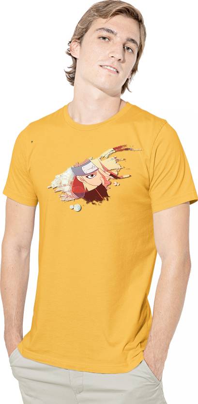 satyuga Men Printed Round Neck Pure Cotton Yellow T-Shirt