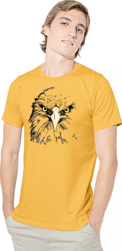 satyuga Men Printed Round Neck Pure Cotton Yellow T-Shirt