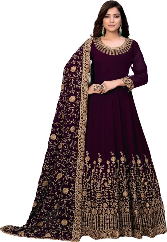 Embroidered Silk Blend Semi Stitched Anarkali Gown (Purple)