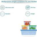 Made of food grade virgin plastics, airtight container keeps food fresh for longer hours, organize your kitchen better in classy and smart way, complete solution to all your kitchen storage needs, the design on it makes it look different, bright floral print adorns the body and it has a blue easy to open cap. The canisters are semi-transparent and you can see what is inside without opening it.