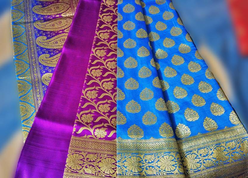 Available with an Unstitched Art Banarasi Katan Silk Blouse in Purple